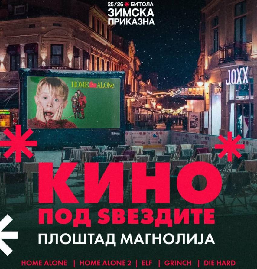 Кино програмата ќе трае 5 денови од 20-25 декември на плоштадот Магнолија, а почетокот на проекциите е 17.00ч.