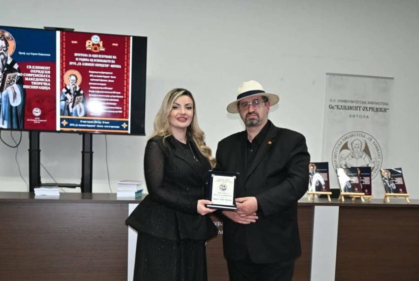 Синоќа на свеченоста беше промовирана книгата од проф. д-р Зоран Пејковски: „Св. Климент Охридски во современата македонска творечка инспирација“