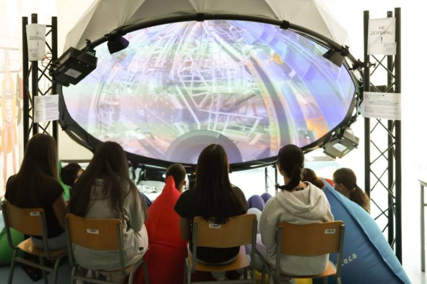 Денес ја славиме љубопитноста и науката! Во просториите на Факултетот за информатички и комуникациски технологии – ФИКТ, ученици и студенти имаа можност да влезат во куполата за виртуелна реалност и директно да го почувствуваат светот на ЦЕРН – преку материјали од официјалните архиви и дигитални содржини.