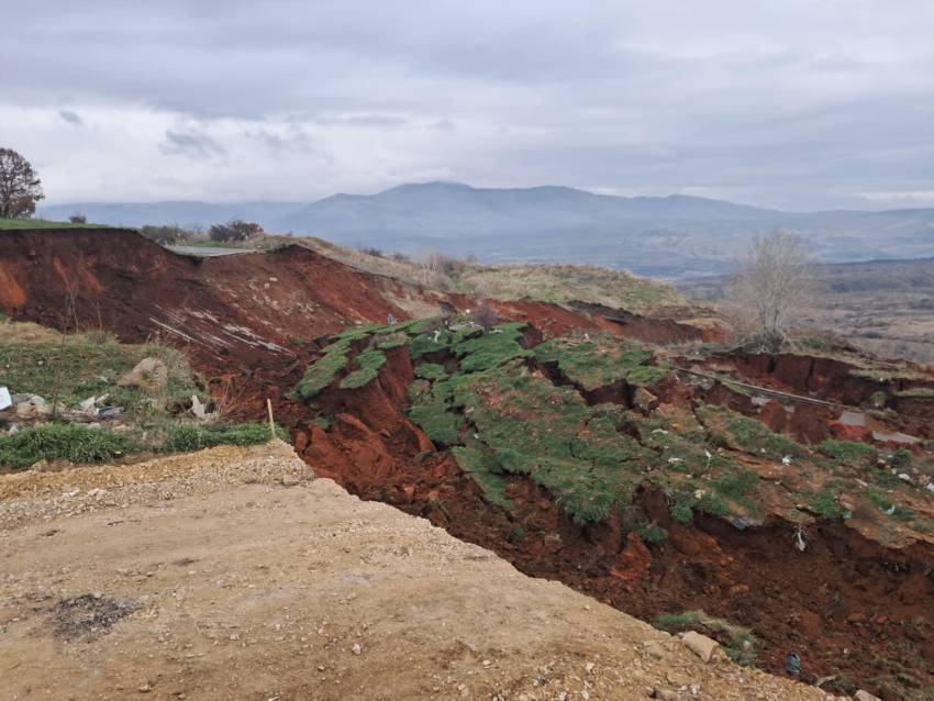 Големо свлечиште на земјиштето го оштети патот за селото Старавина, битолскиот дел на Мариово. Пропаѓањето на коловозот е во должина од 100 метри и длабочина од десет метри.