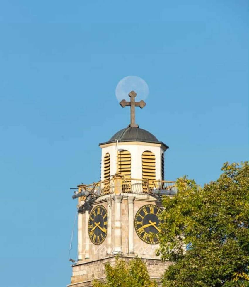 Битолскиот фотограф Ивона Кочов утрово успеа да долови исклучително убава позиција на Месечината со Саат Кулата во Битола
