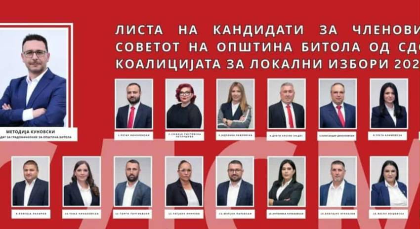 СДСМ Битола освои пет советнички мандати во идниот Совет на Општина Битола. Повторно во советничката клупа ќе седне Петар Николовски кој беше ностиел на листата, а со него ќе бидат и Софија Ристевска-Петрушева, Јадранка Павловска, Драги Крстев и Александар Дракуловски. Советничката листа на СДСМ освои околу 5400 гласа.